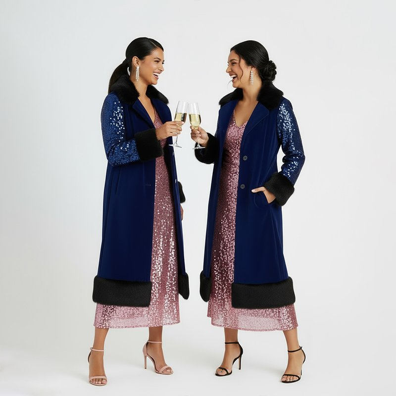 Turn every entrance into a showstopper with the Anabele Sequin Long Coat, a dazzling piece that blends sparkling sequins with timeless elegance. Perfect for evening occasions, this coat adds glamour and sophistication to your winter wardrobe.Models are 5'7 and 5'6 wearing a size Small.
