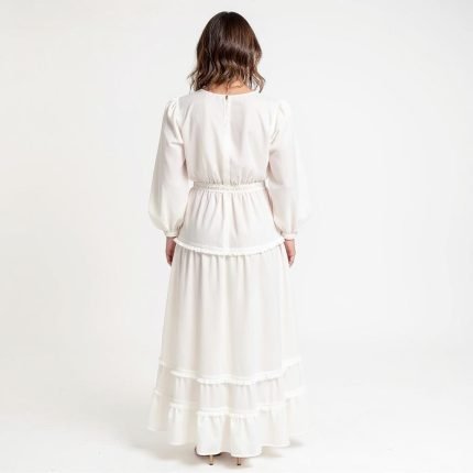 Perfect for social gatherings, the Ava White Long Sleeve Maxi Dress offers a timeless, elegant look that pairs beautifully with classic accessories.