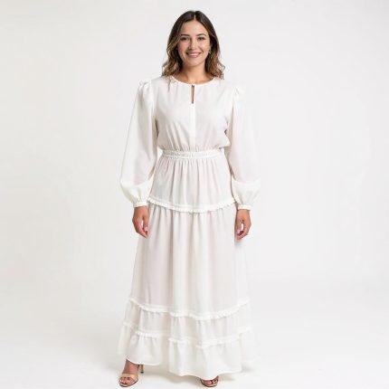 Perfect for social gatherings, the Ava White Long Sleeve Maxi Dress offers a timeless, elegant look that pairs beautifully with classic accessories.