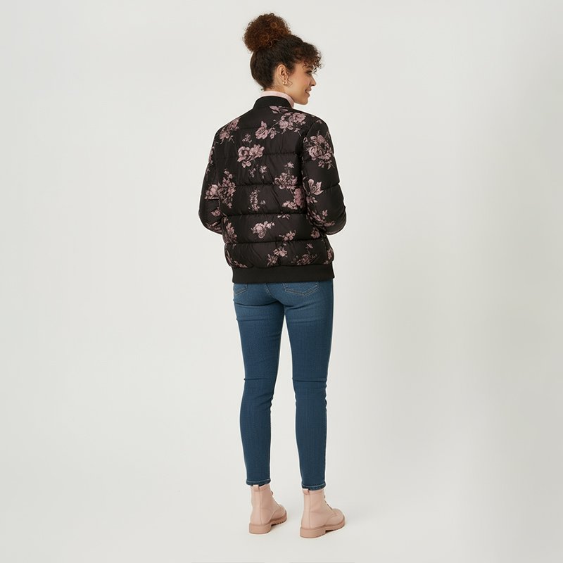 Black Floral Bomber Puffer Jacket Black Floral Bomber Puffer Jacket