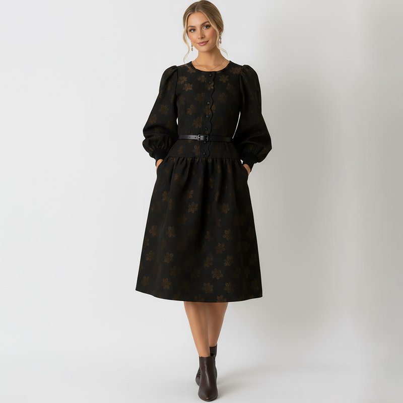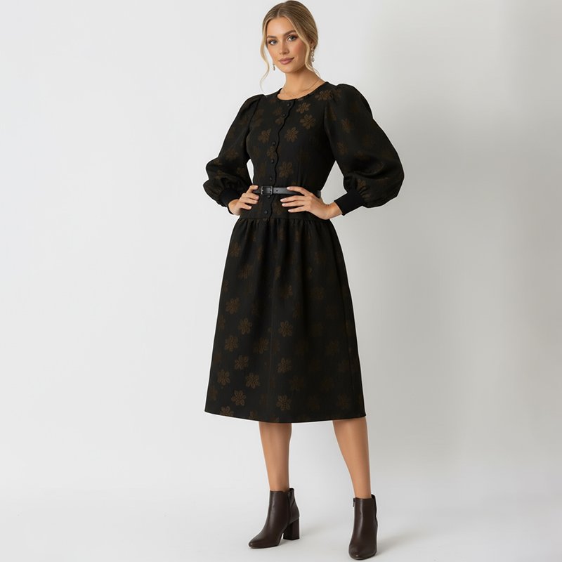 Step out in timeless style with this jacquard floral midi dress, crafted for both elegance and versatility.Model is 5’8” and wearing size Small. You can select your height before purchase for the perfect fit.