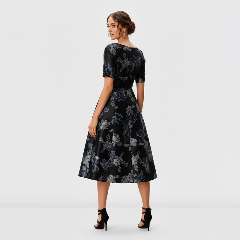 Step into elegance with this Black Floral Midi Dress, designed with a flattering fit-and-flare silhouette and vibrant floral prints. Perfect for weddings, church, or evening gatherings, this dress combines classic charm with modern style for any special occasion.Model is 5'7" and wearing a size Small. Bust: 34", Waist: 26", Hips: 37", Length: 46". You can select your height before purchase for the perfect fit.