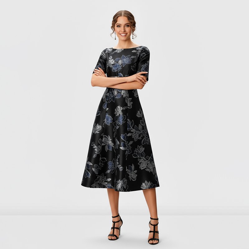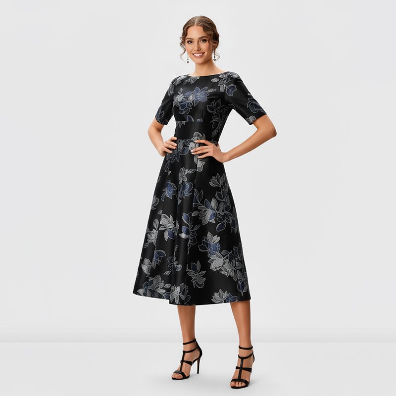 Lara Black Floral Midi Dress