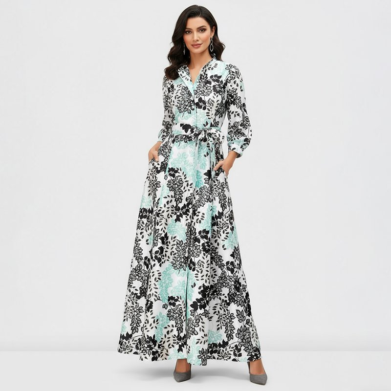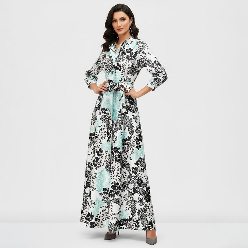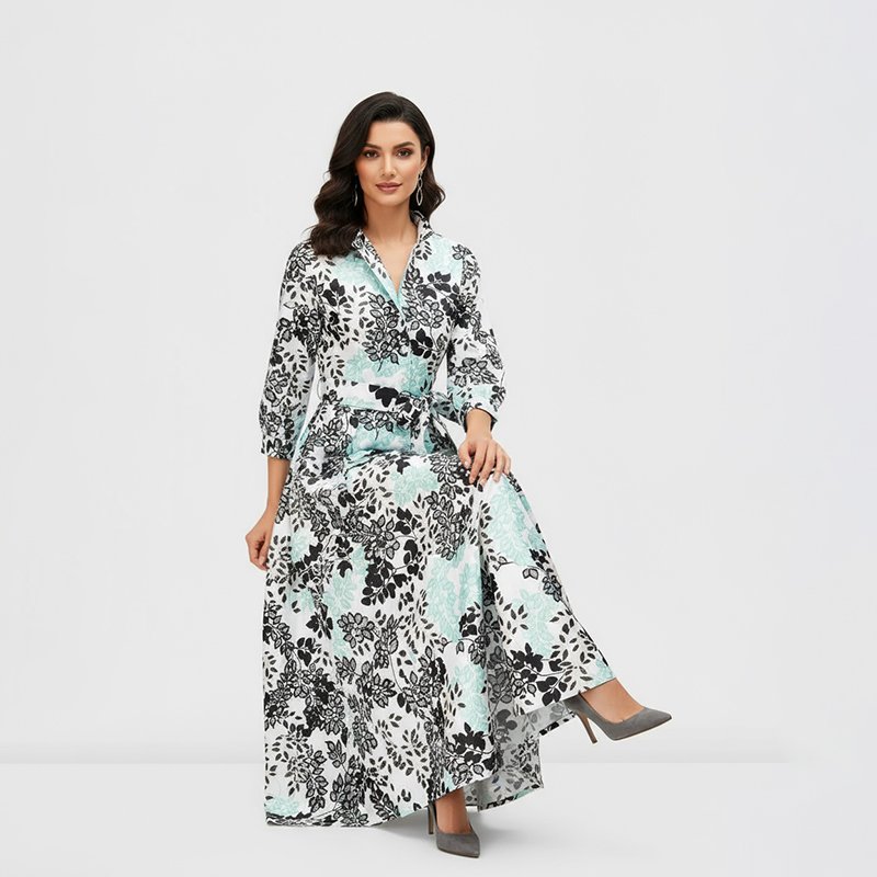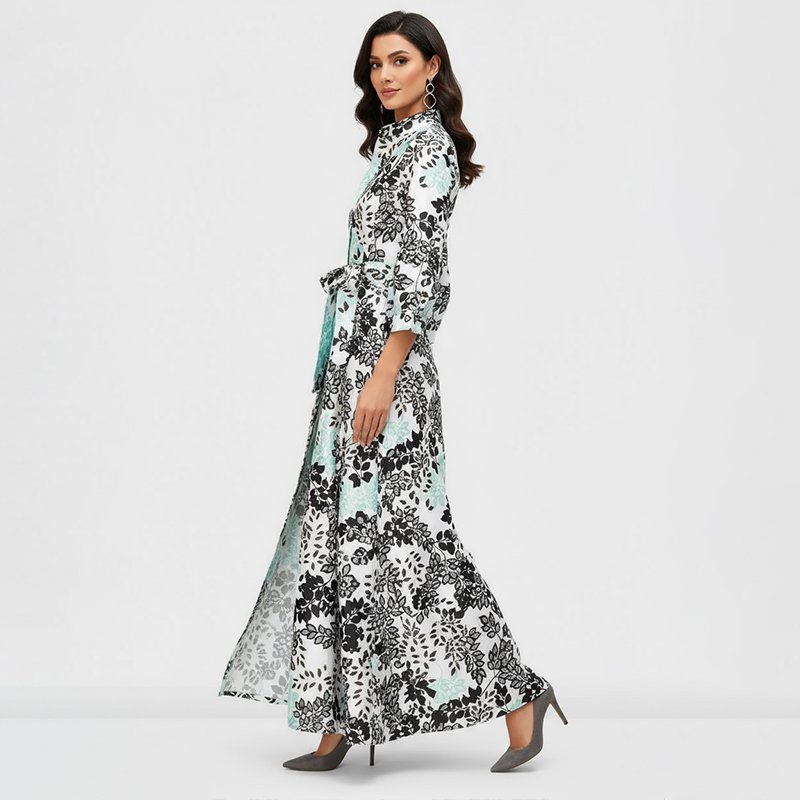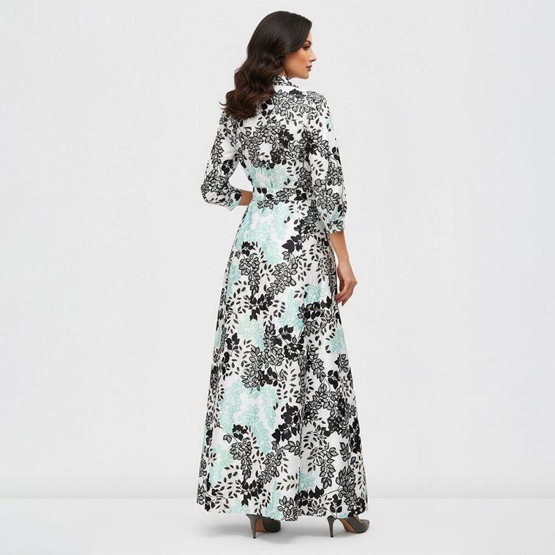 Step out in style with this black and mint floral maxi dress, perfect for making a statement at your next event.• Model is 5'9" and wearing a size Small. You can select your height before purchase for the perfect fit.