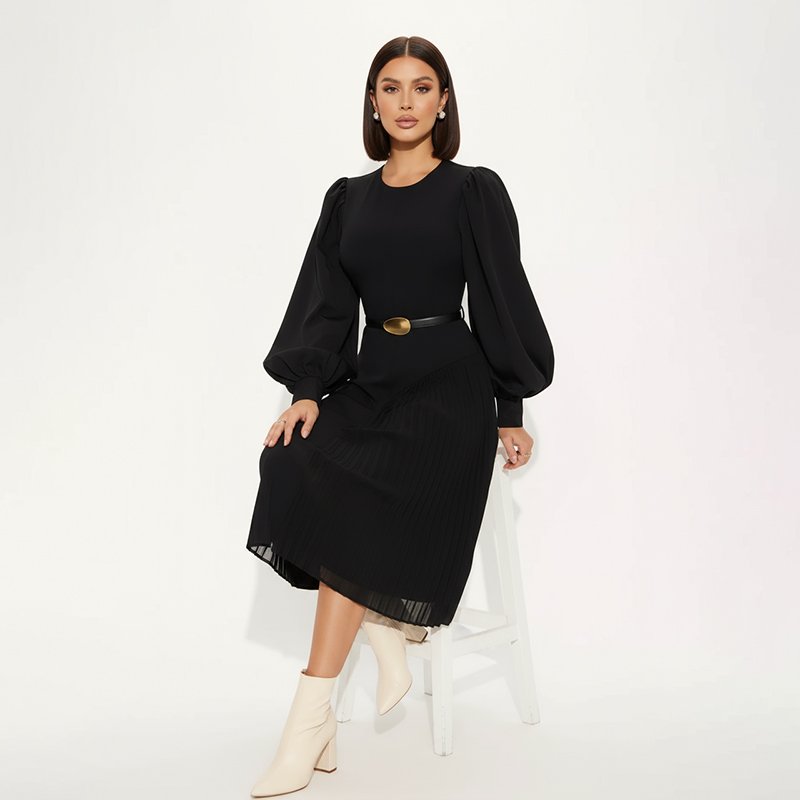 Chic Black Pleated Midi Dress