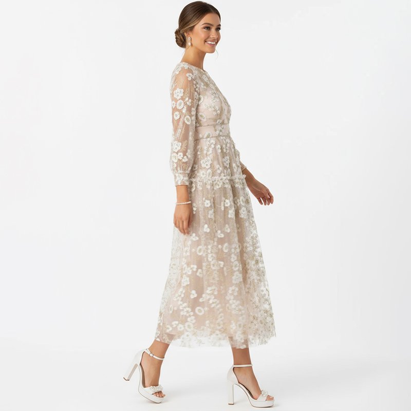 Blush Sheer Embroidered Midi Dress