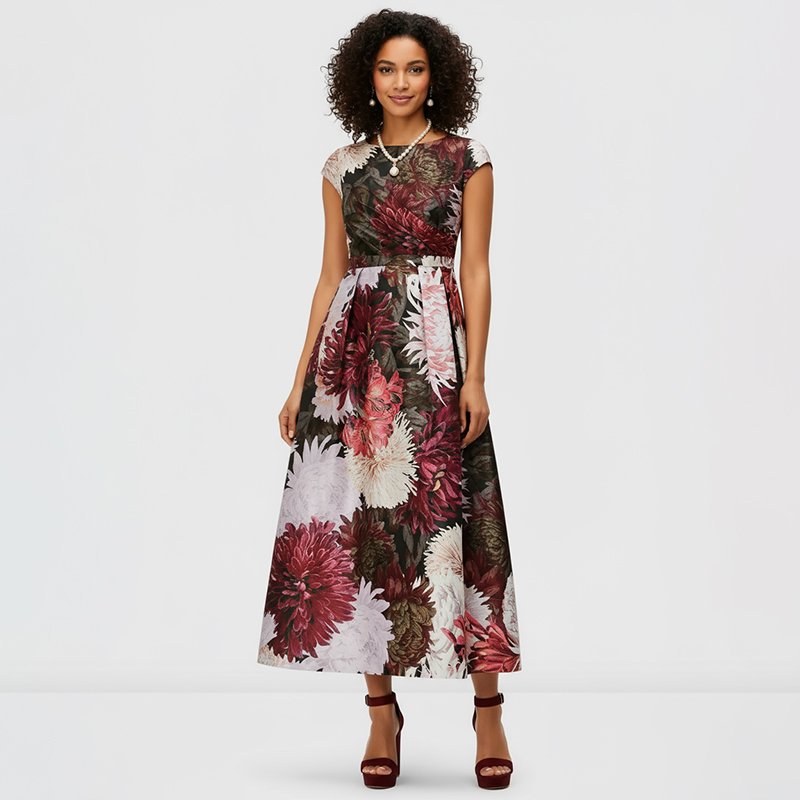 NatalieReviewerThe cap sleeves and floral design make this dress so feminine and classic. Perfect for special occasions.