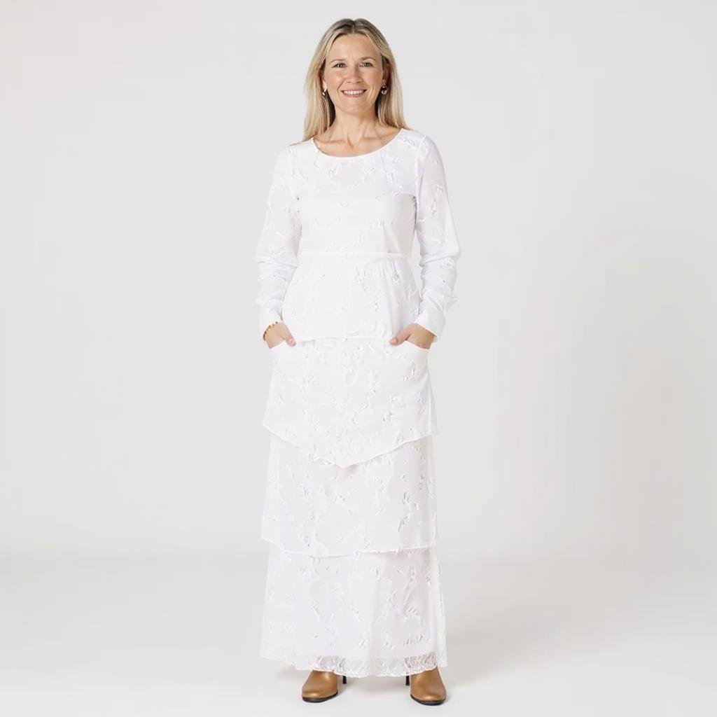 Step into any moment with quiet confidence in this lace maxi dress, designed to bring graceful beauty and practical ease to your days with its flowing tiers and handy pockets.