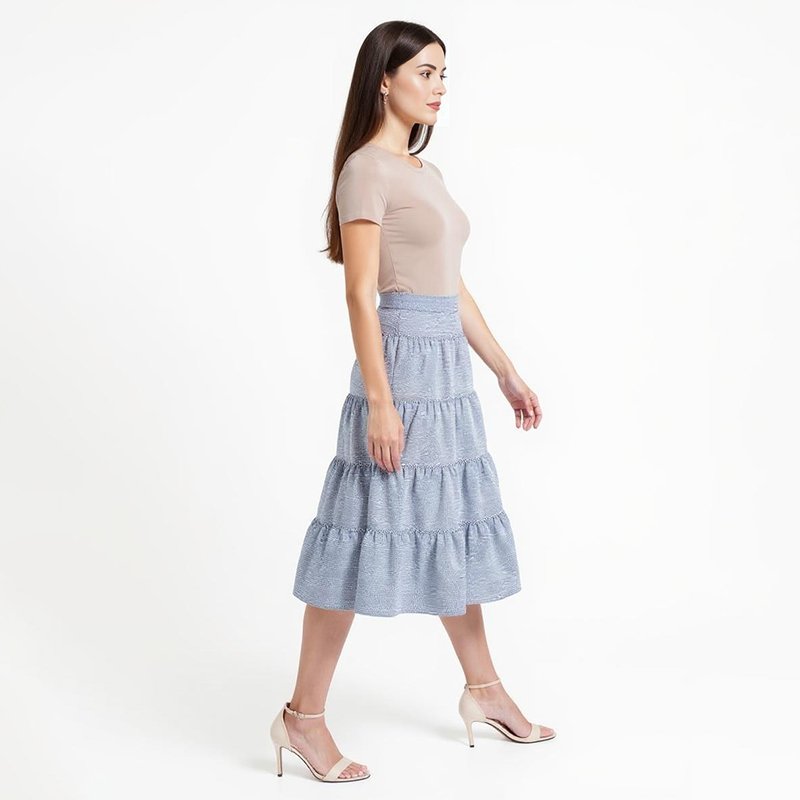 Celeste Blue Tiered Midi Skirt Celeste Blue Tiered Midi Skirt