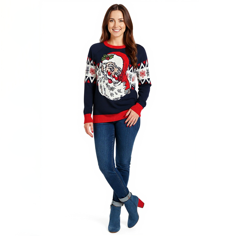 Navy knit with oversized Santa Claus graphic