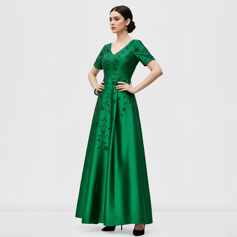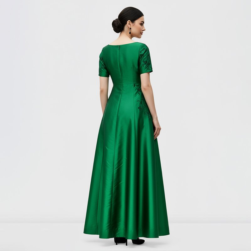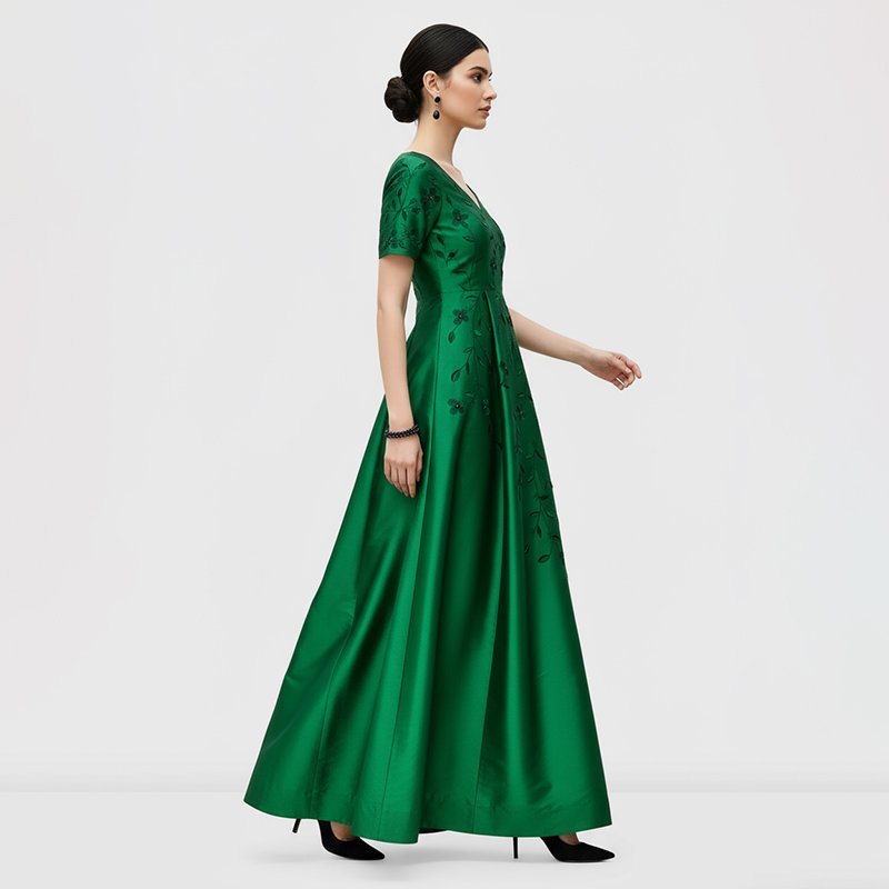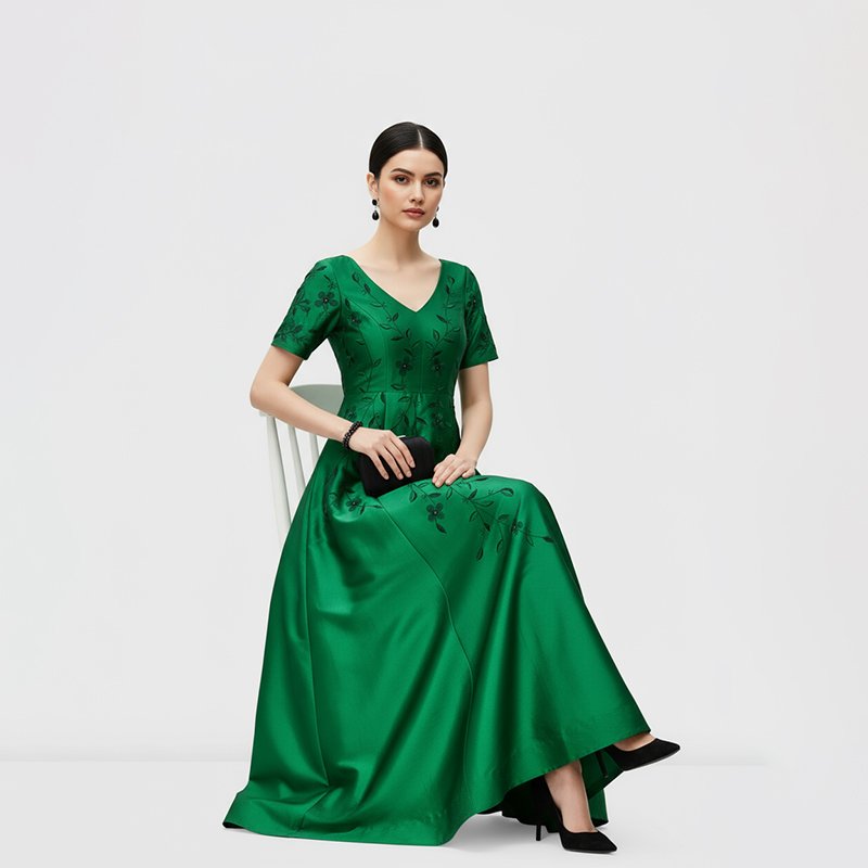 Step into timeless elegance with this green embroidered evening gown, designed to make every occasion unforgettable.