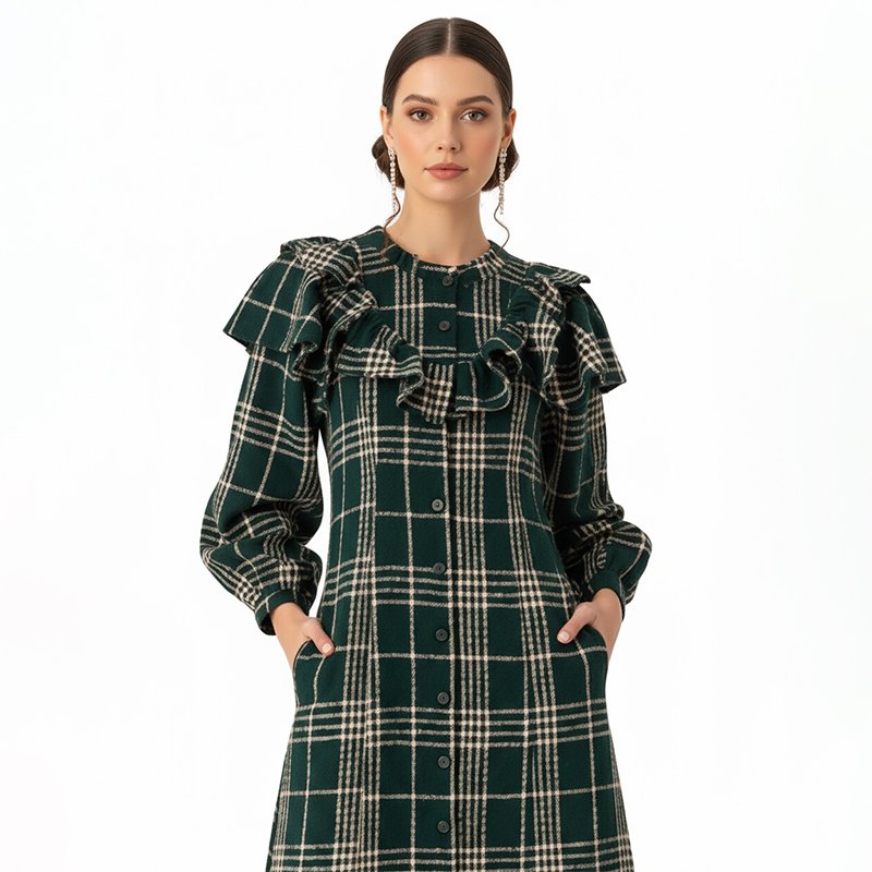 ZoeReviewerBeautiful plaid pattern and elegant ruffles. It looks classic and sophisticated without being too formal.