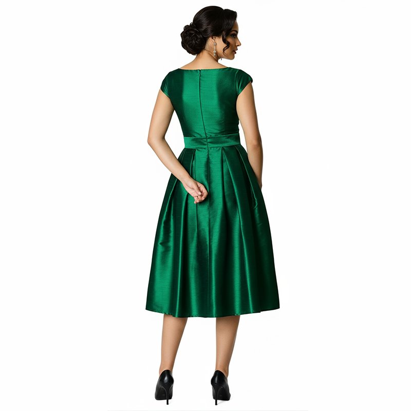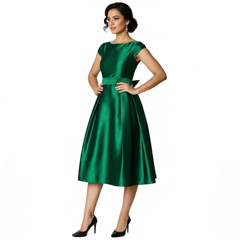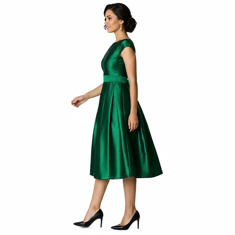 Arrive polished and photo-ready in this emerald satin midi, designed to flatter your shape and move elegantly from ceremony to celebration.
