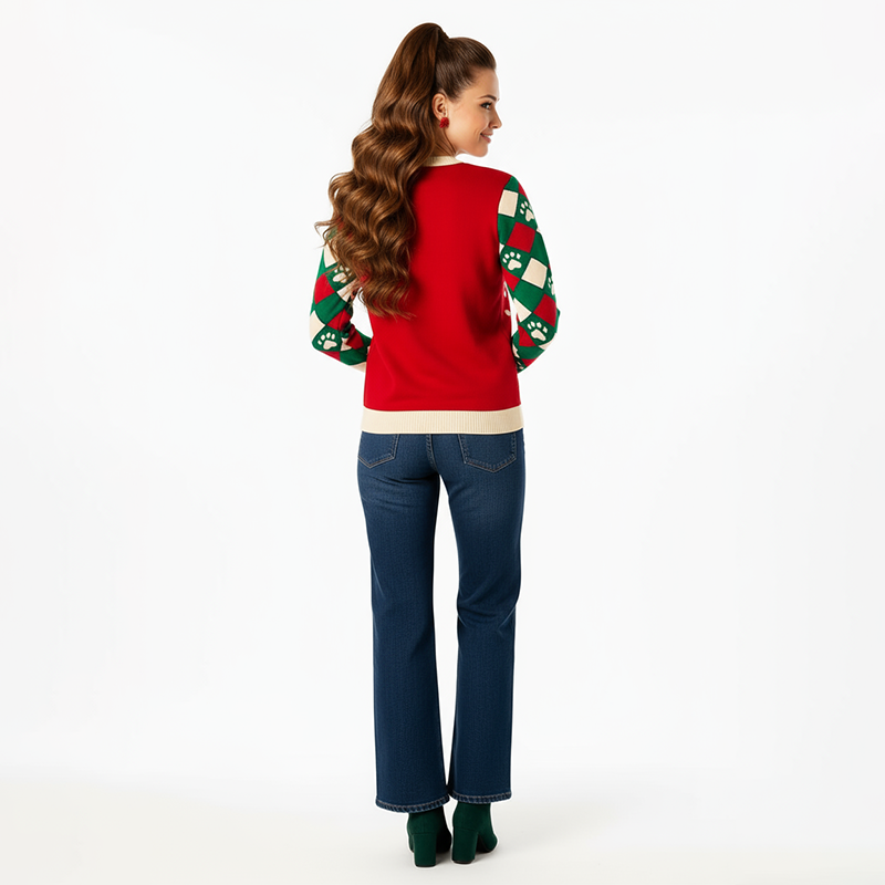 Show off your holiday humor with this red “Meowy Christmas” cat sweater featuring a playful grumpy cat design, colorful lights, and festive argyle sleeves. Perfect for cat lovers who enjoy standing out at holiday parties.Model is 5'7" and wearing a size Small. Bust: 34", Waist: 26", Hips: 37", Length: 25". You can select your height before purchase for the perfect fit.