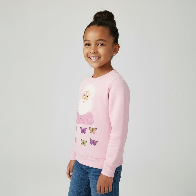 Kids Pink Santa Butterfly Christmas Sweater