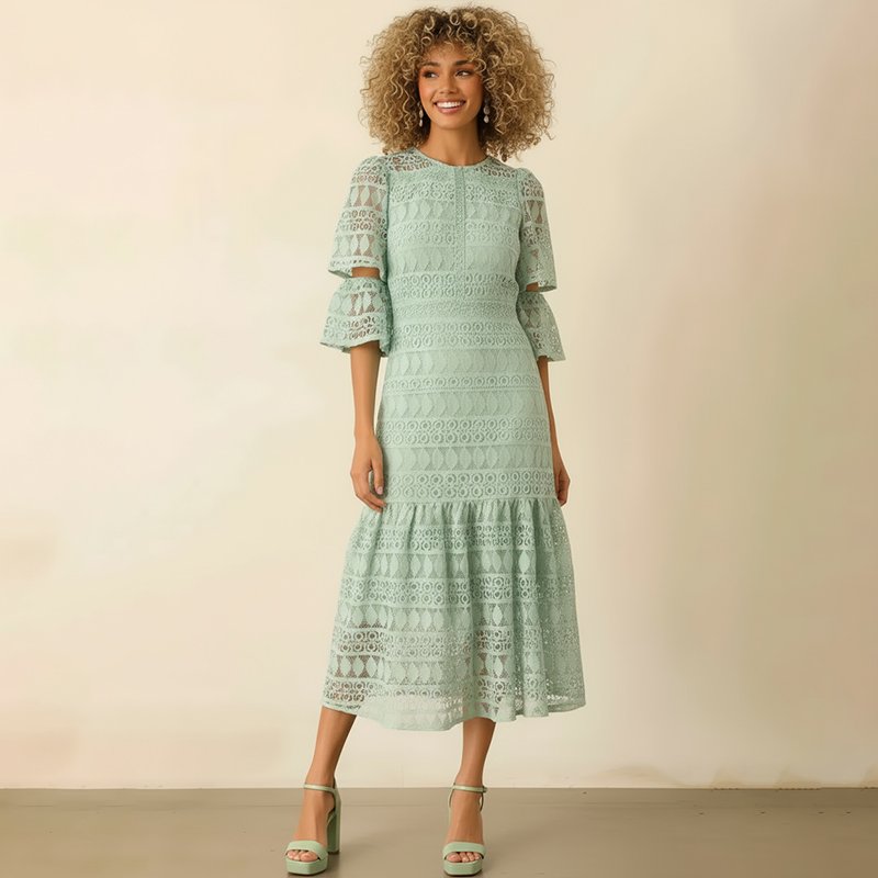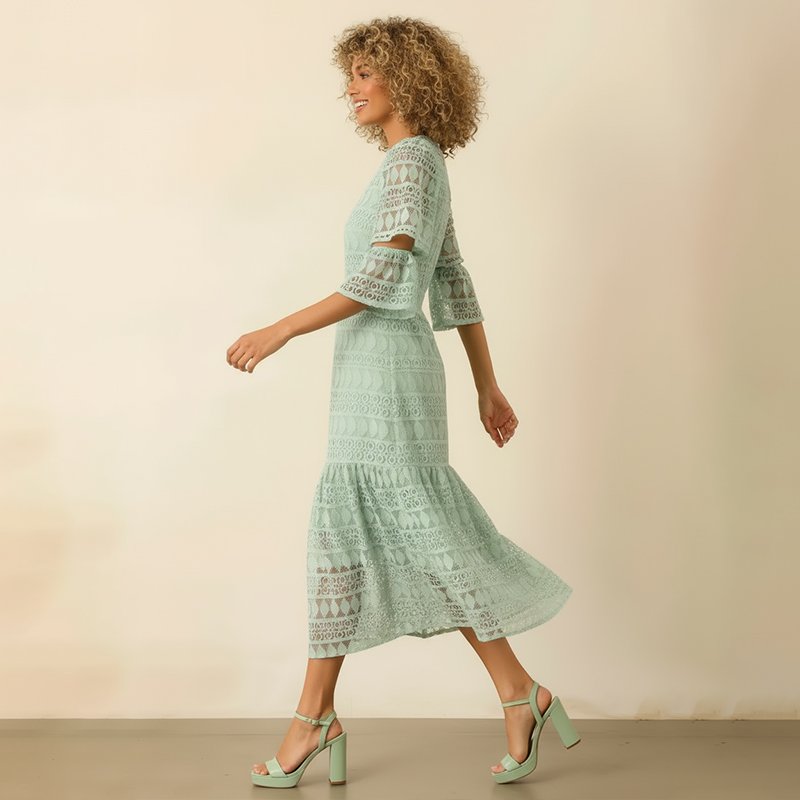 Mint Lace Tiered Midi Dress