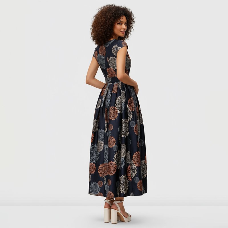 Imagine turning heads at weddings, evening soirées, or elegant dinners in this floral brocade maxi dress designed to flatter every curve.• Model is 5'9" and wearing a size Small. You can select your height before purchase for the perfect fit.