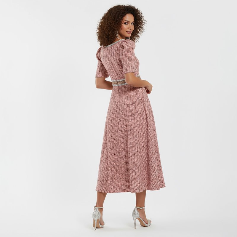 Pink Lace Trim Midi Dress