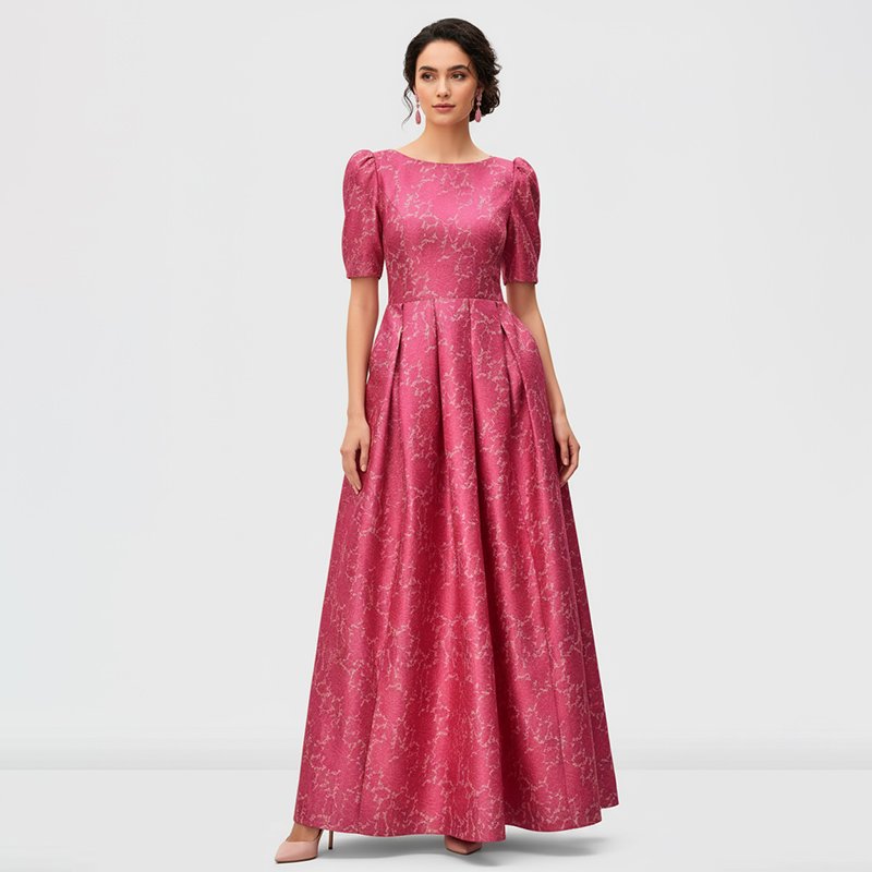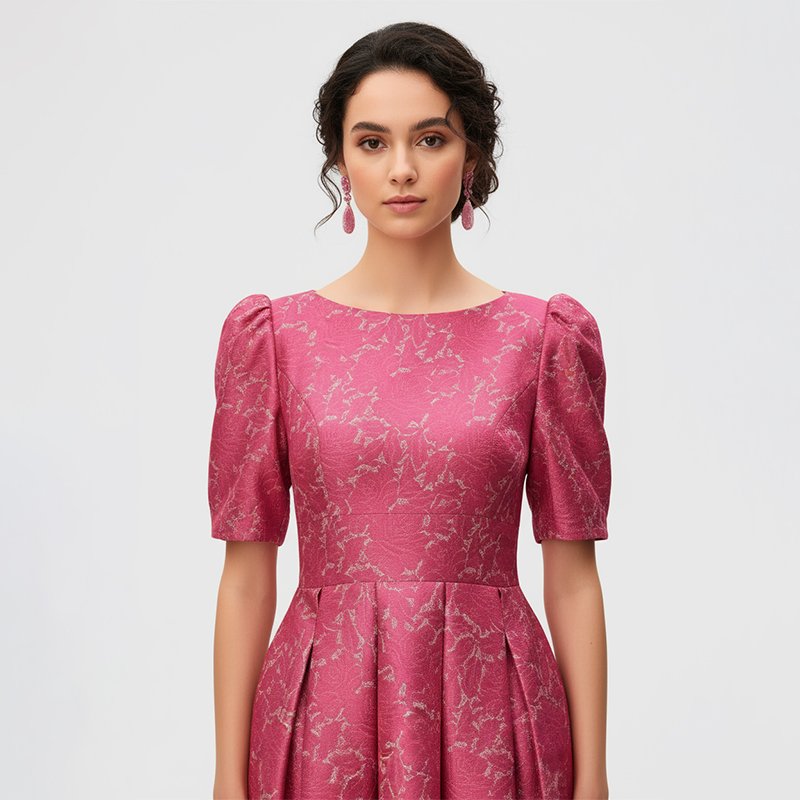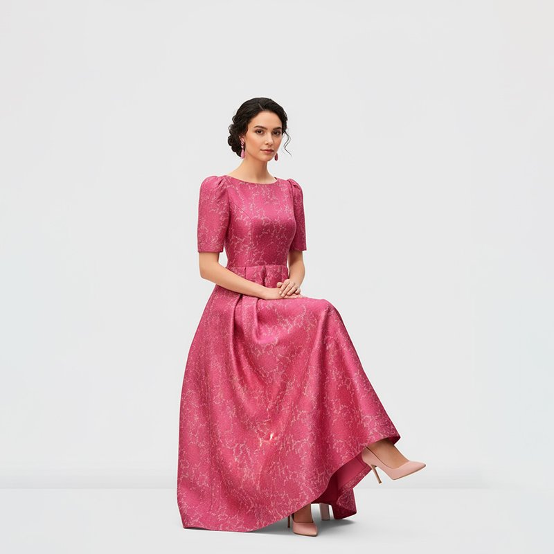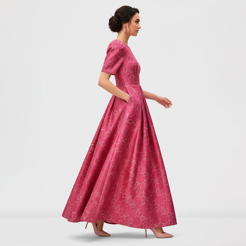 Make every entrance unforgettable in this pink jacquard maxi, crafted to glide with you and deliver effortless elegance at any special event.