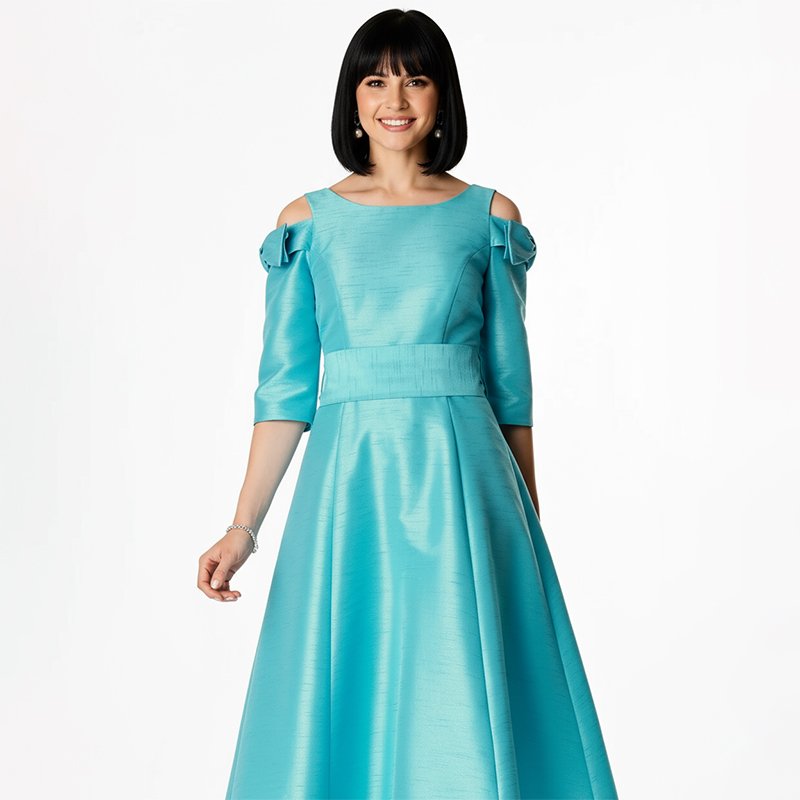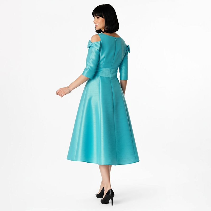 GraceReviewerSuch a gorgeous dress! The bow accents on the shoulders add just the right touch of charm. It looks far more expensive than it is highly recommend for holiday parties or evening events.