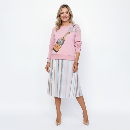 Light pink pullover with sequin champagne bottle design