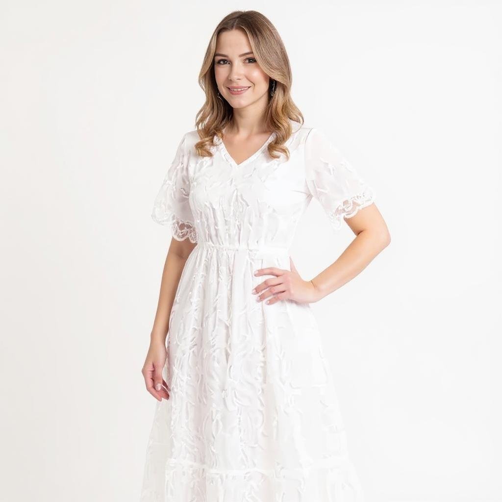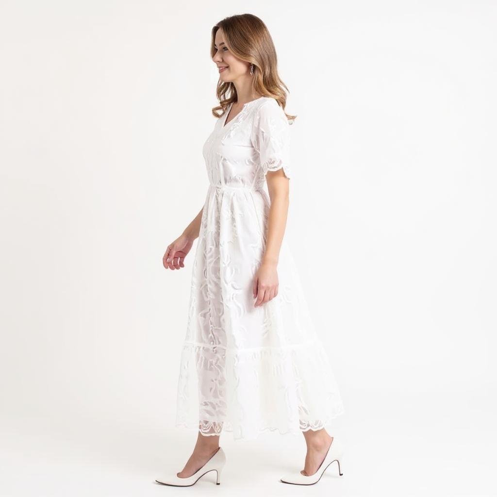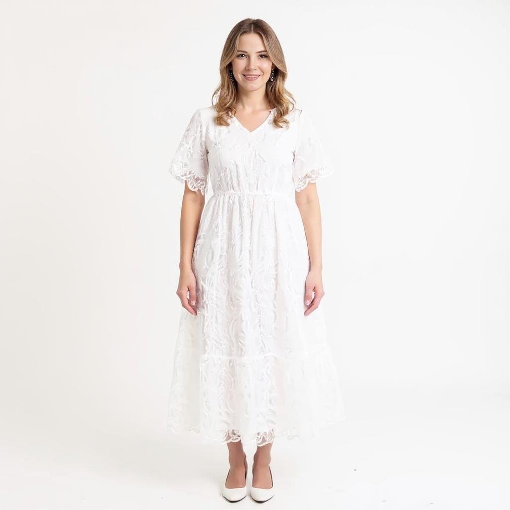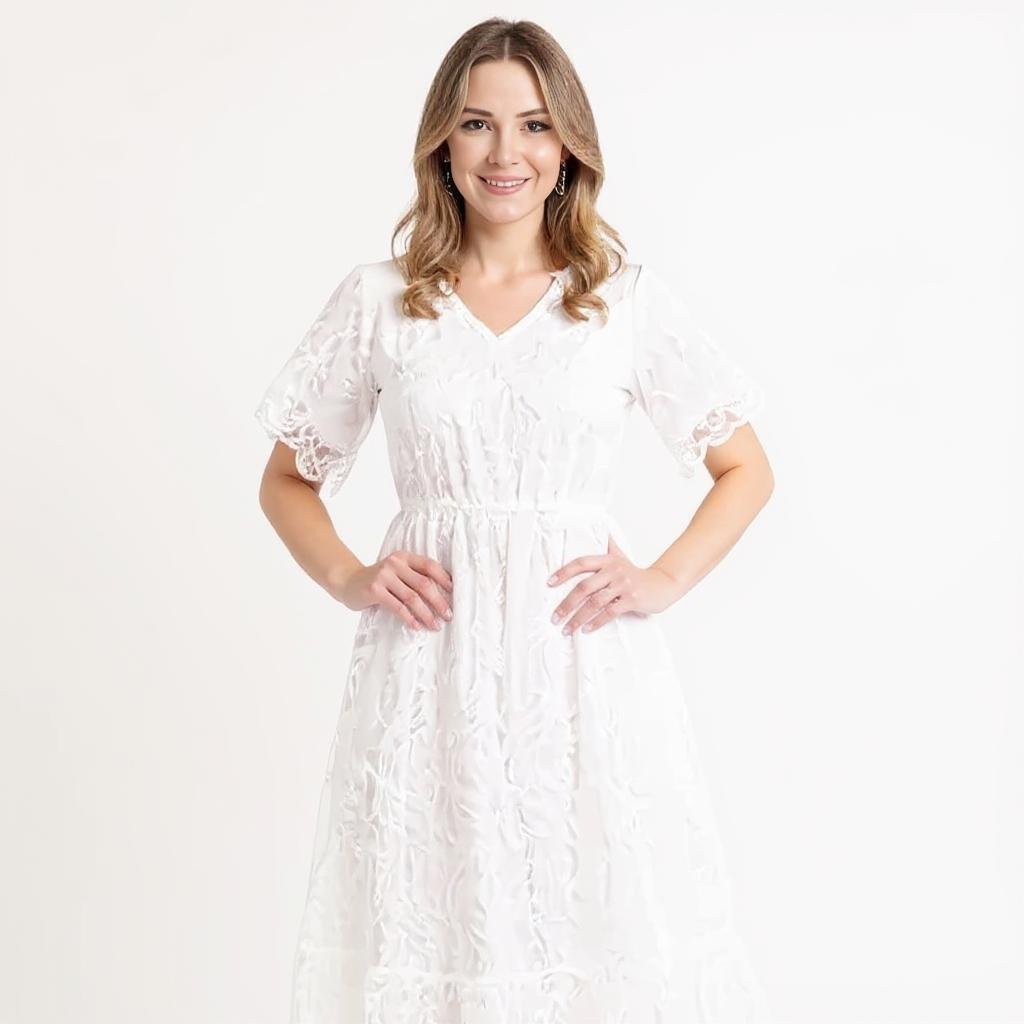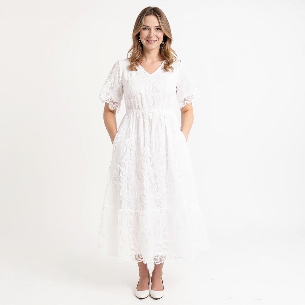 The Nadene Elegant White Midi Dress The Nadene Elegant White Midi Dress