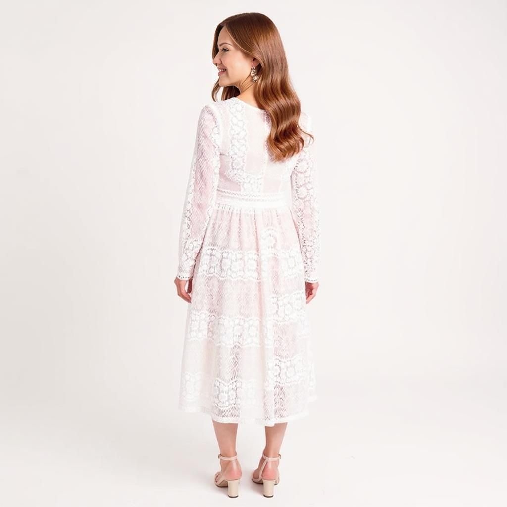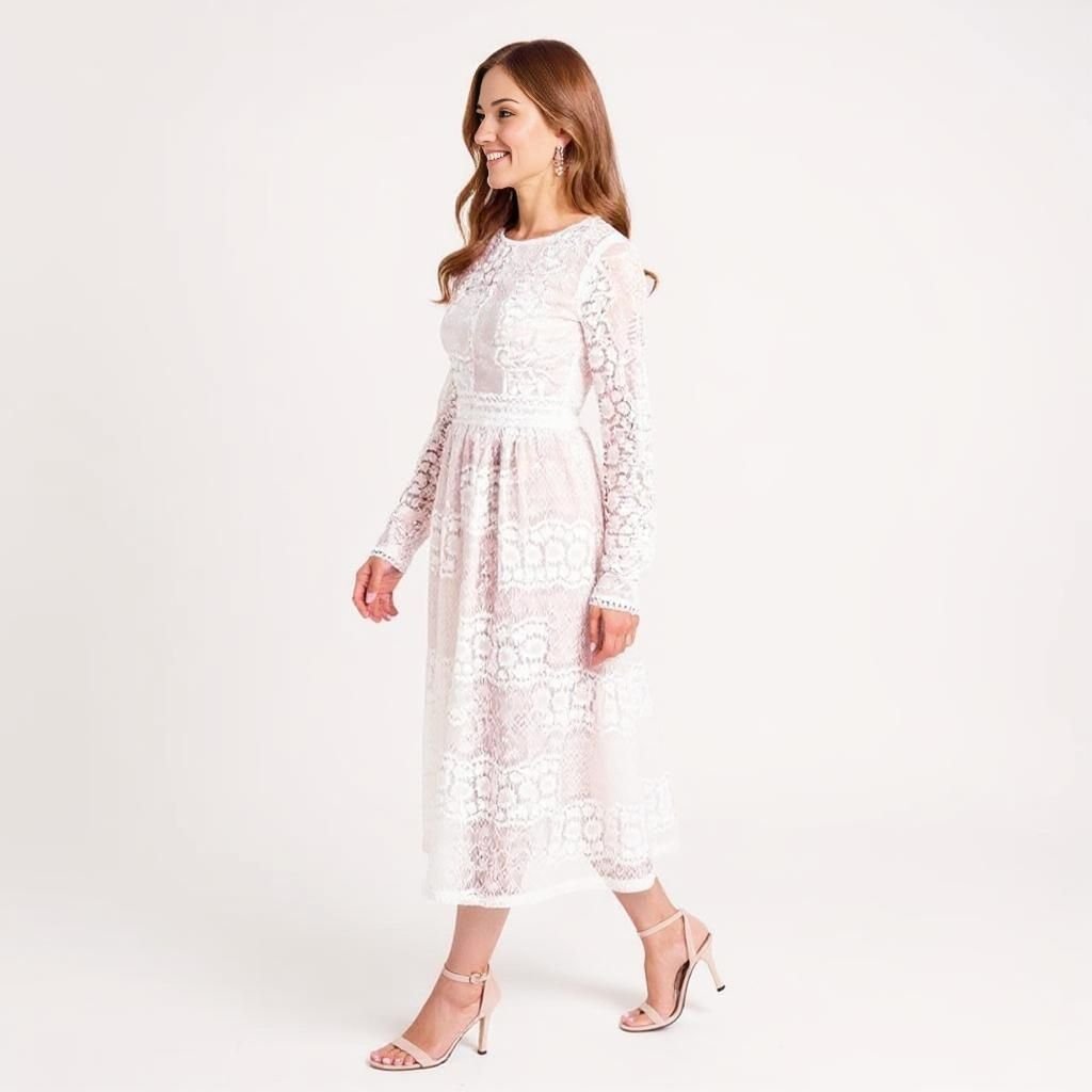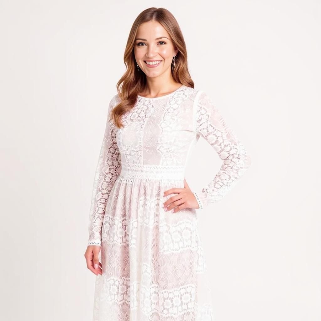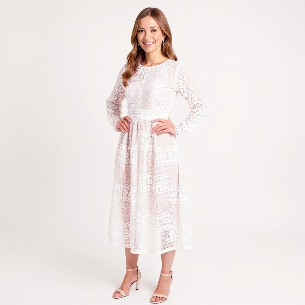 Embrace graceful confidence in this lace midi dress, perfect for celebrating life’s special moments with elegance and modesty.