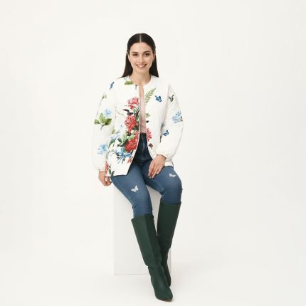 Bring elegance to your everyday wardrobe with this quilted jacket featuring vibrant floral prints and delicate butterflies. A statement layering piece that’s both lightweight and eye-catching.Model is 5'6" and wearing a size Medium. Bust: 35", Waist: 27", Hips: 38", Length: 27". You can select your height before purchase for the perfect fit.