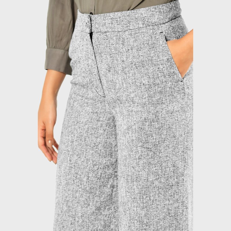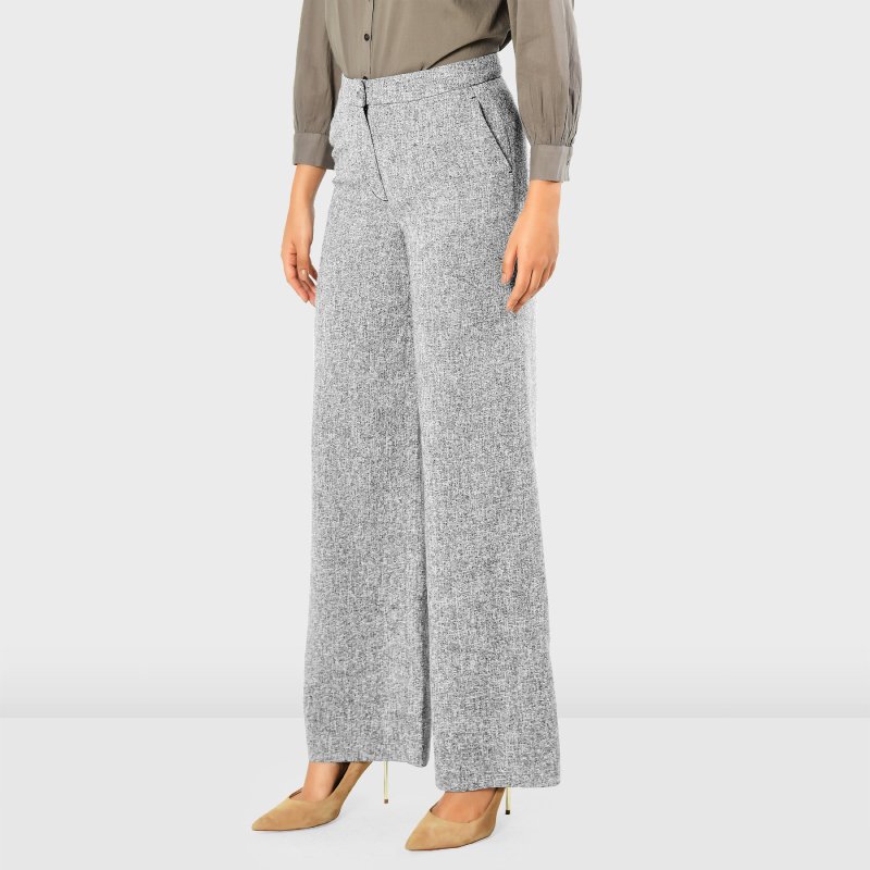 Our wide-leg pants offer a refined yet contemporary look, crafted from crosshatch suiting fabric for a polished, textured finish.- Designed to reach full length when worn with 3" heels.
