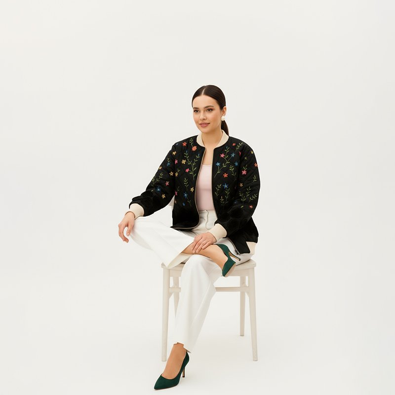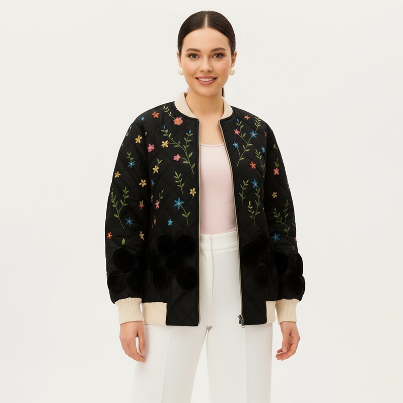 Floral Embroidered Bomber Jacket Floral Embroidered Bomber Jacket
